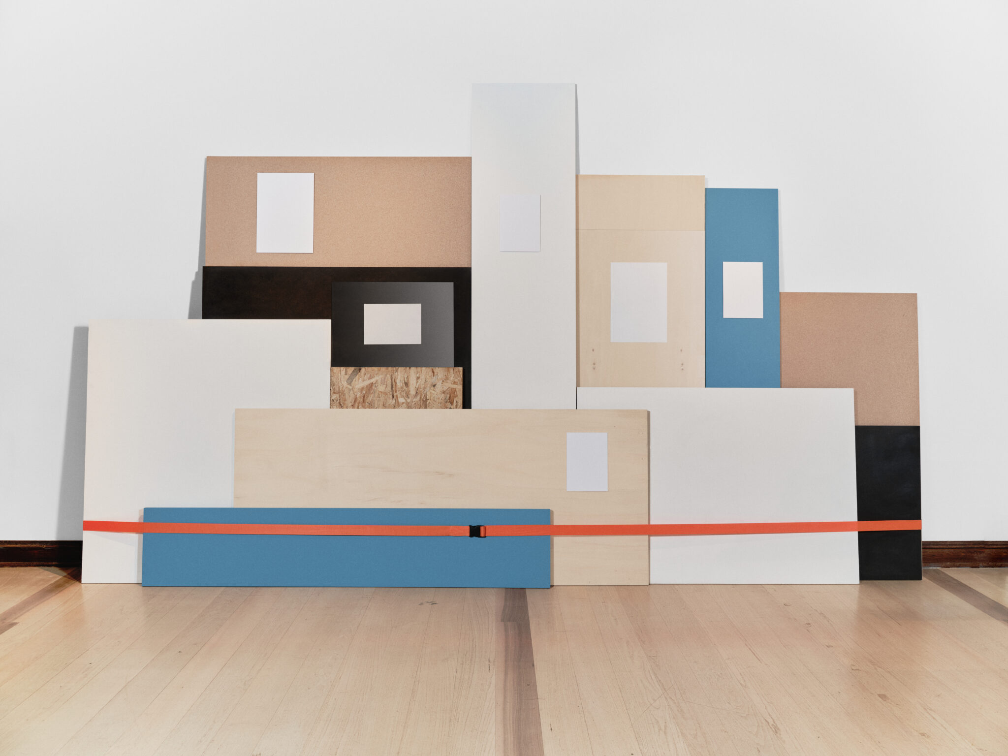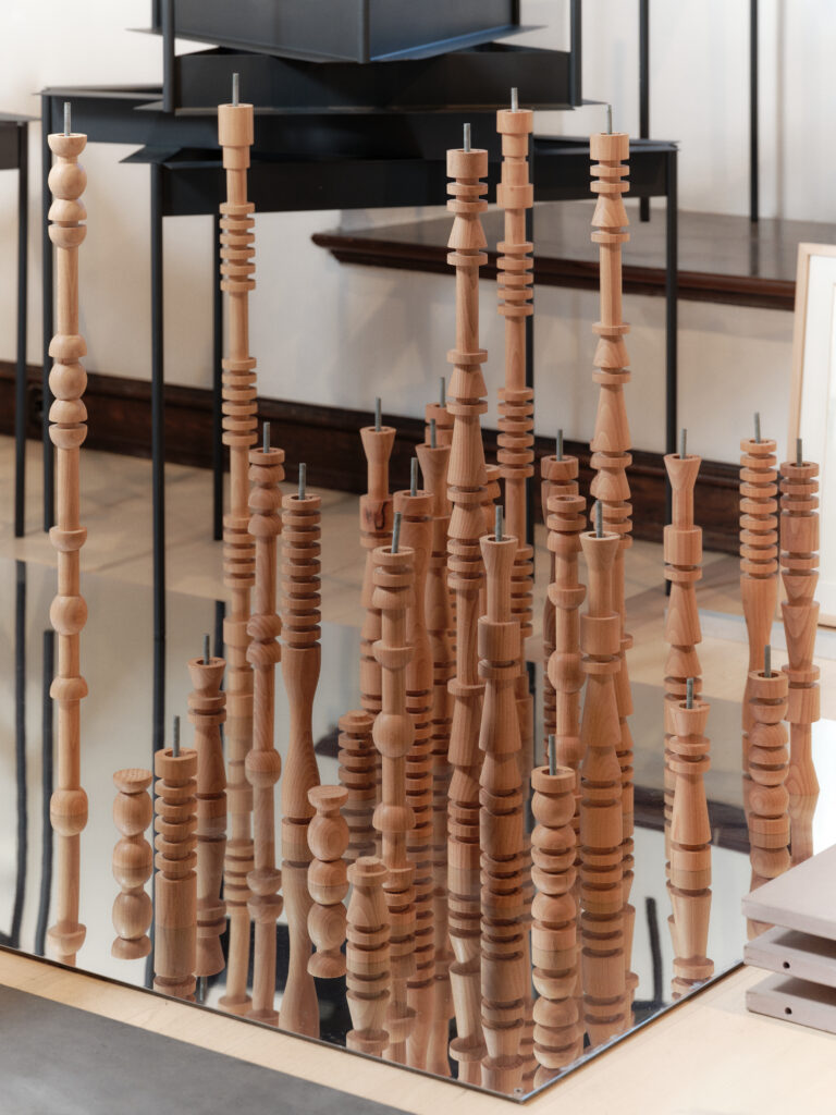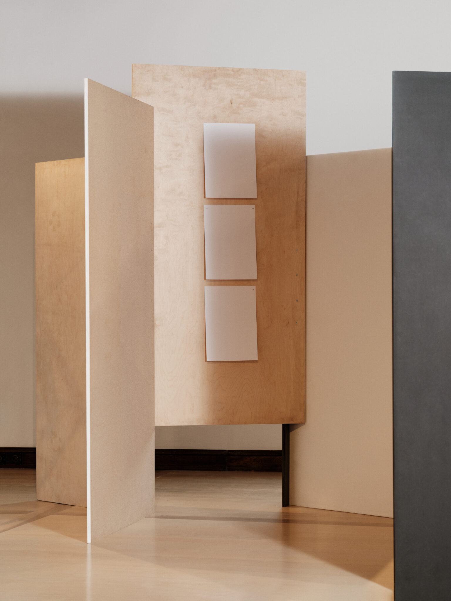 The installation Materials, Elements, Prototypes for the first time publicly presents categorised materials and elements from the museum’s depot. These served as the basis for a three-week workshop for students from the Faculty of Architecture, who developed prototypes of exhibition structures from discarded materials. The workshop tested guidelines for the design of temporary structures, such as modularity, the use of standard dimensions and elements, simple assembly, and reversible fastening methods, with the aim of dismantling the structures after use and reusing them as resources for new spatial interventions.